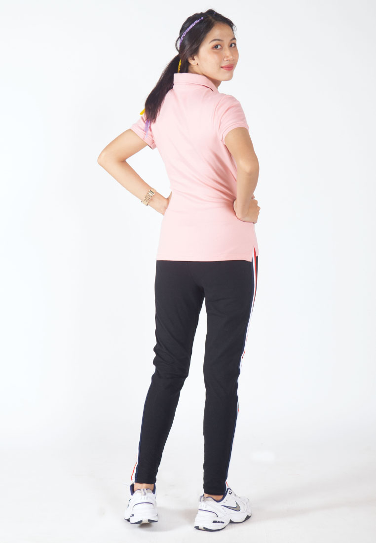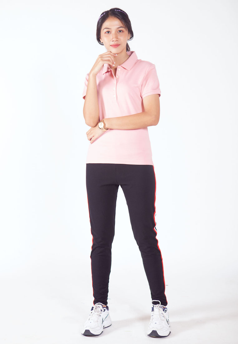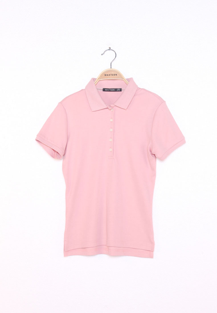 โปโลสุภาพสตรีกระดุม 5 เม็ดชมพูพาสเทล